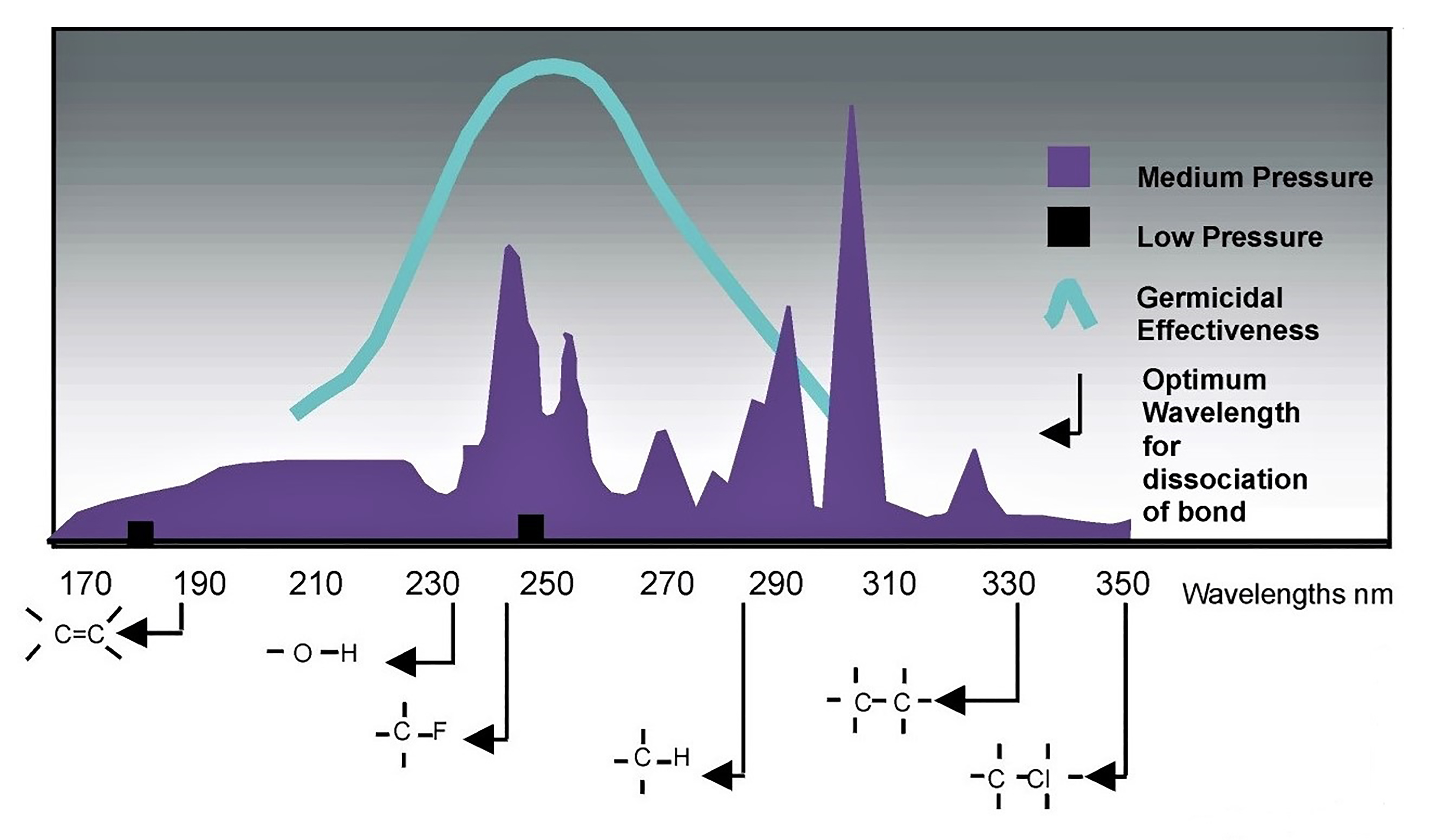 L’effetto dei raggi UV sui microrganismi si può definire come un intervento di demolizione fotochimica del DNA, che impedisce alla cellula di riprodursi. Ciò avviene in corrispondenza dell’esposizione della cellula a radiazioni nella gamma UV-C, tra 200 e 310 nanometri.